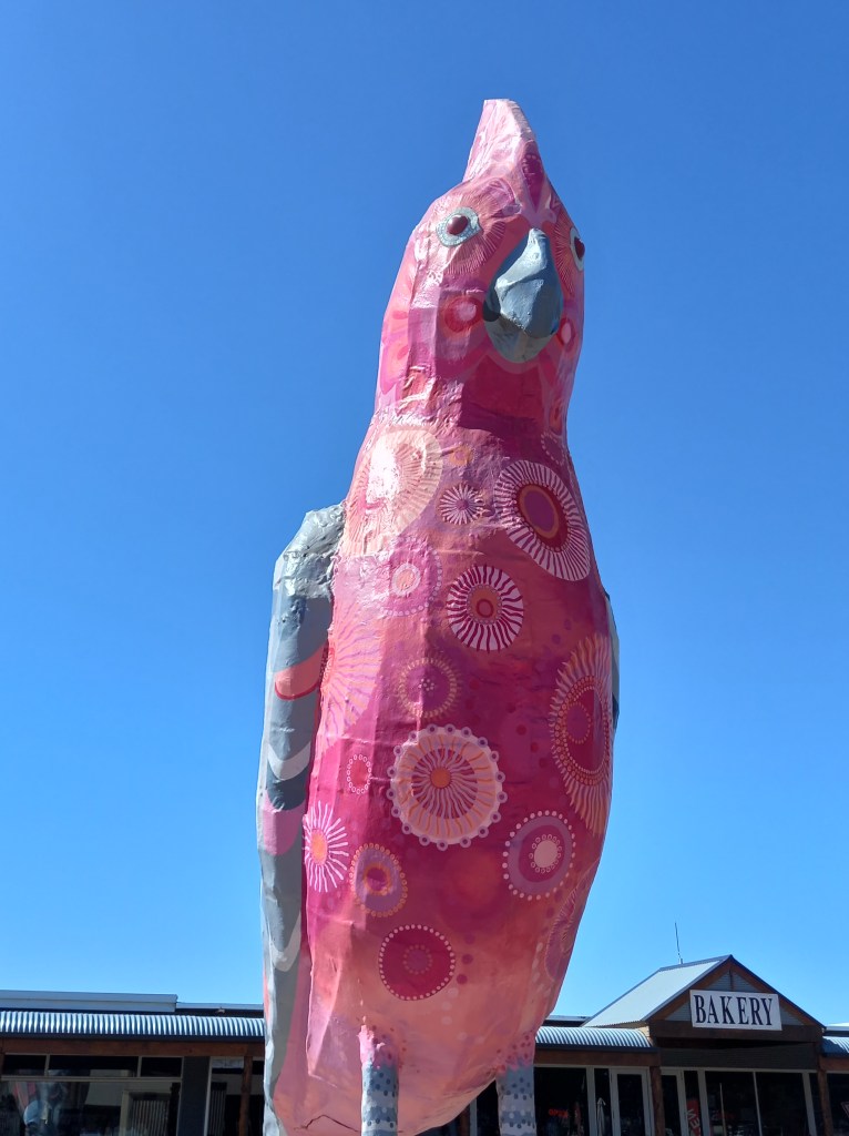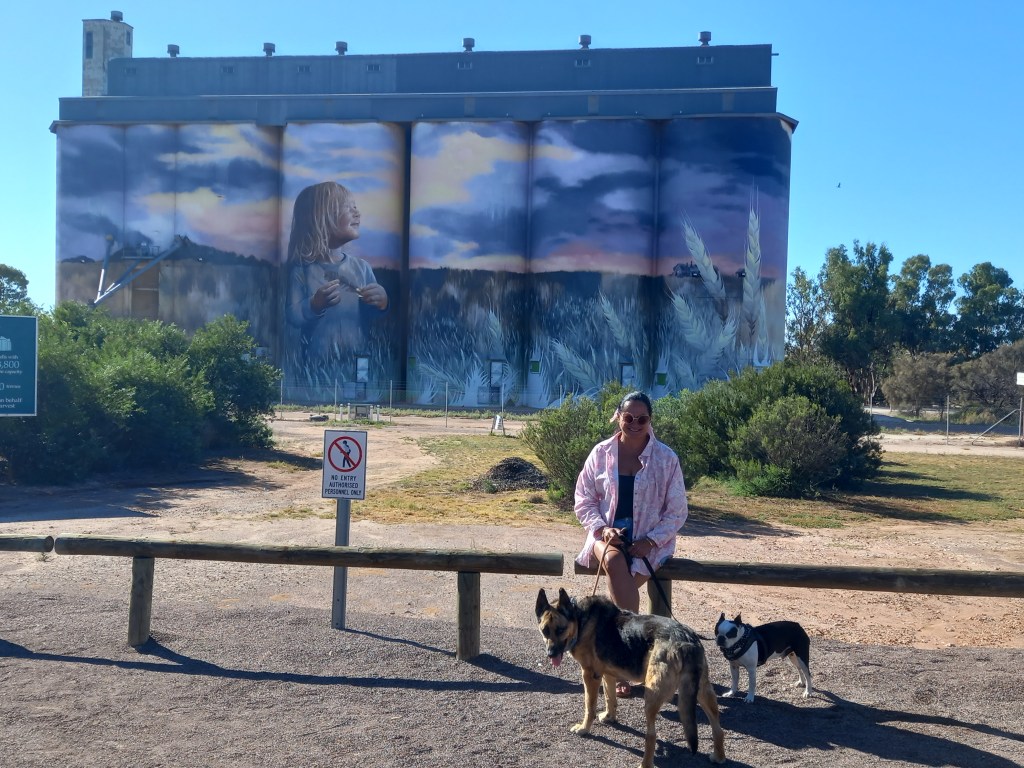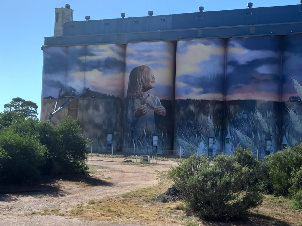 Kimba is a small town tucked away Half way across Australia. We arrived mid morning into Kimba to see the big beautiful Pink Galah. This was right next to the Kimba bakery so it was hard not to get some refreshments from this good looking inviting place. We shared a mince pie and sausage roll both very delicious. Great tasty pastry and meat. Cost $13 but well worth it. Then off to the famous Kimba Silo we went which is a very popular destination in this town. The silo Art was completed in September 2017 and took 26 days and 200 litres of paint. The silo here in kimba is on Viterra Silos and brings so much interest and money into the small community which is great.