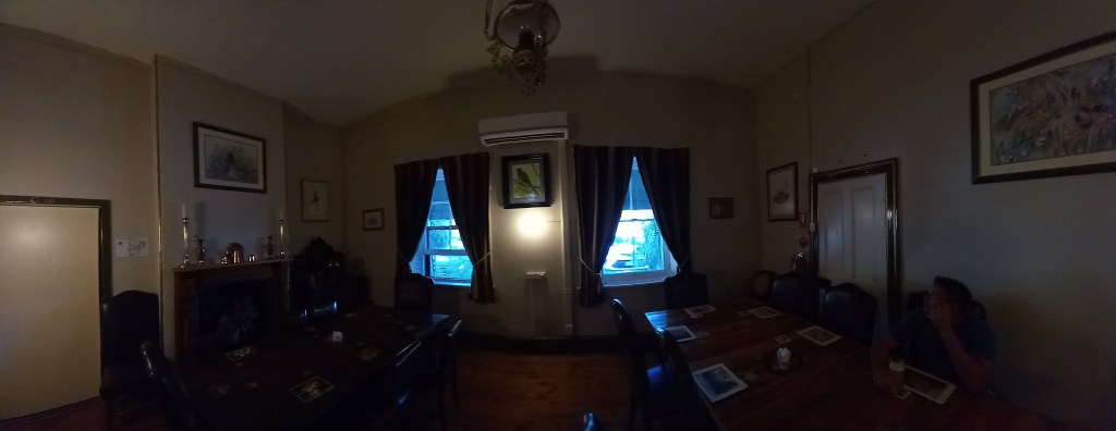 So we pull up at the pub and park up for free which is great you just need to spend $20 at the pub which is very easy for me. The pub interior was set in the early 1920s and each room was very unique with old mahogany walls and furniture. They even had a pianola there for your entertainment. Some people were thrashing that thing way too much but its all about having fun .The hosts are very friendly and the food (pub grub) was sensational. I had the Rump Steak which was cooked to perfection and Paul had the chicken Snitty . And yes we did go over the $20 per night budget but the experience of being here and the food was fantastic.