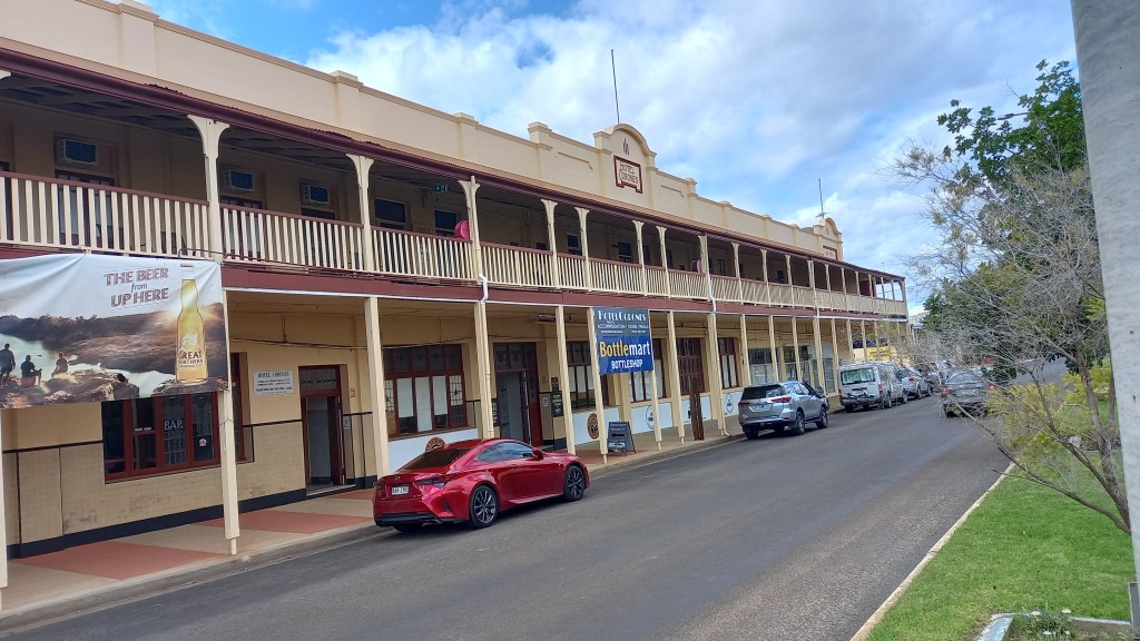 After leaving Charlotte Plains we headed North to this little town population of 3000. It Is the largest town South West Queensland so stock up on food, fuel and goods.Our accomodation is at the Cobb and Co Caravan Park within walking distance of the town. I am convinced every house here has one or two dogs that are on guard at all times. Taking our two hooligans for a walk would have woken the entire neighbourhood up at 7am this morning. The town host x2 IGA Supermarkets which are well stocked a couple of pubs and a pharmacy so everything you need in the outback.