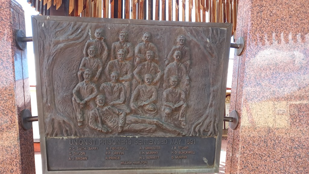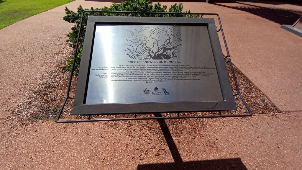 Our camping ground Roses and Things was a Boutique camping ground that only catered for 12 camp sites. They also have a cafe attached to the camping ground which is very popular here in this town for the magnificent fresh produce and food. Unfortunately we stayed on the only weekend it was closed….such a shame. We headed off into town to see all the attractions this small town population of 2900 had to offer. First up was the Tree of Knowledge which is a heritage listed oak tree located in the main street of Barcaldine. The town was the headquarters in 1891 for the Australian Shearers Strike and in 1892 the reading of the Labour Party leading to the formation on the Australian Labour Party (ALP) as it stands today.