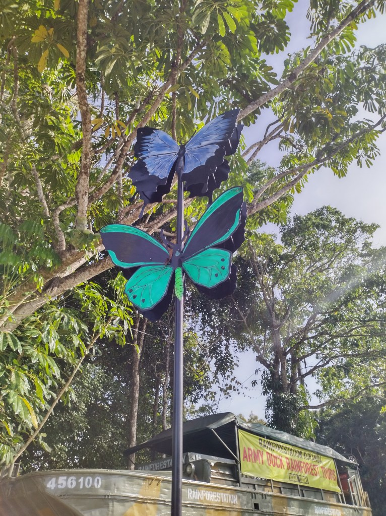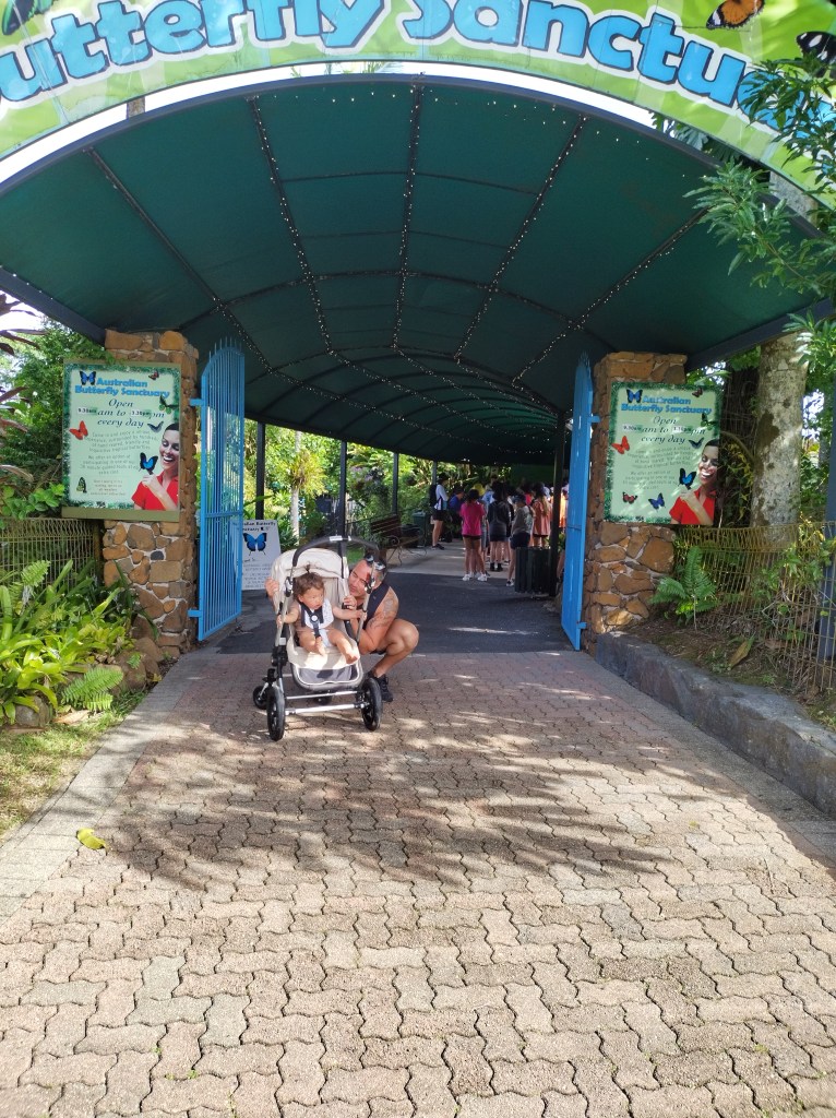 On our first family day tour Makenzie and Matua included we took a day trip to Kuranda which is 39km west of Cairns. Kuranda is known for its Scenic Railway Rainforest Cableway and offers ocean views from the Gondola rides. The town is also very leafy and pretty with loads to do. We chose to go the the Butterfly Sanctuary located in this little village. We spent an hour here looking around and saw so many beautiful butterflies. The enclosure was quite small for the cost of $22.50 per adult it was a bit expensive but if you like butterflies come and visit there is so much information about these insects.