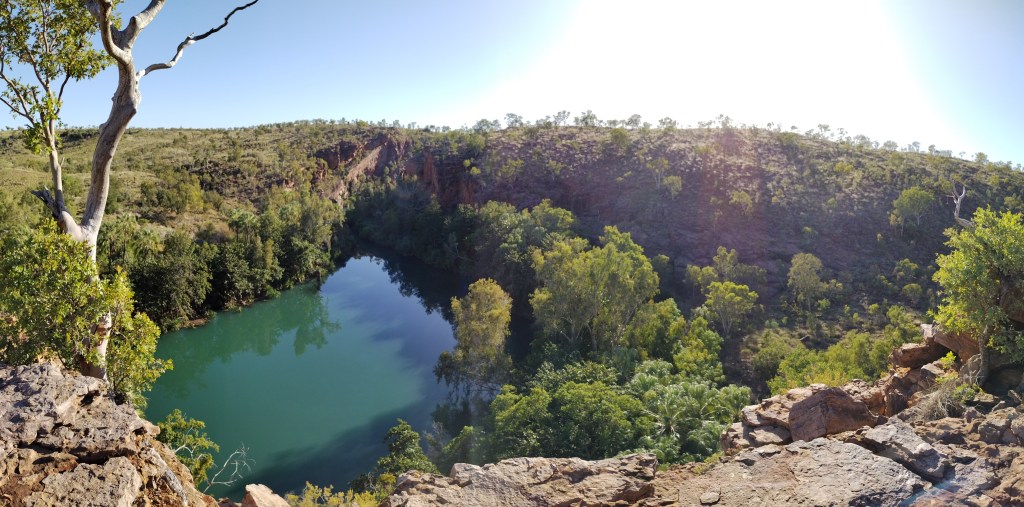 You are greeted by expansive plains ,sandstone cliffs and emerald green waters. We stayed at Adels Grove which is located 10 minutes drive down the road. Once in the park there are all types of walks and hikes that caters for all fitness levels. From easy walks around the initial park to the more challenging walks Upper gorge lookout, Constance Range Trackwalks ,Wild dog dreaming. You can also choose to swim in the lower gorge or up at the Indarri Falls.