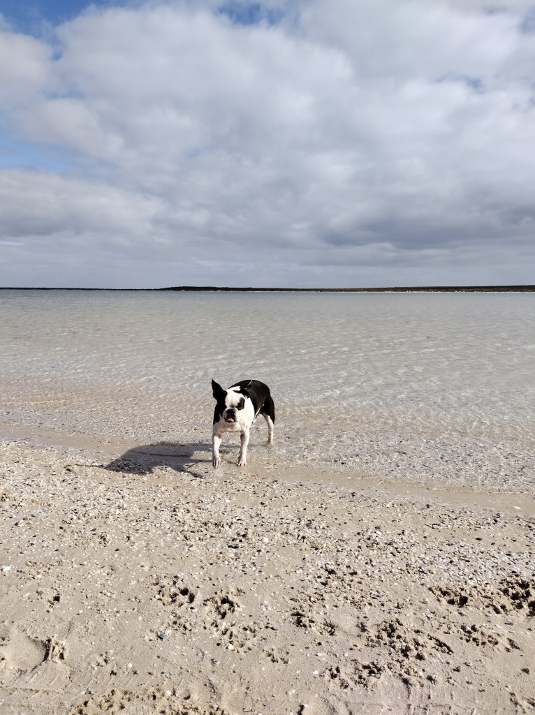 Our favourite places were both Big and Small Lagoons. The water was so clear and very refreshing for the soul. Paul took the kayak out it was a bit windy no fish once again to be caught next time . We spent a couple of hours here reading our books in the Sun and taking the dogs for runs up and down the beaches. There was a lot of other avid minded people doing the same thing too.