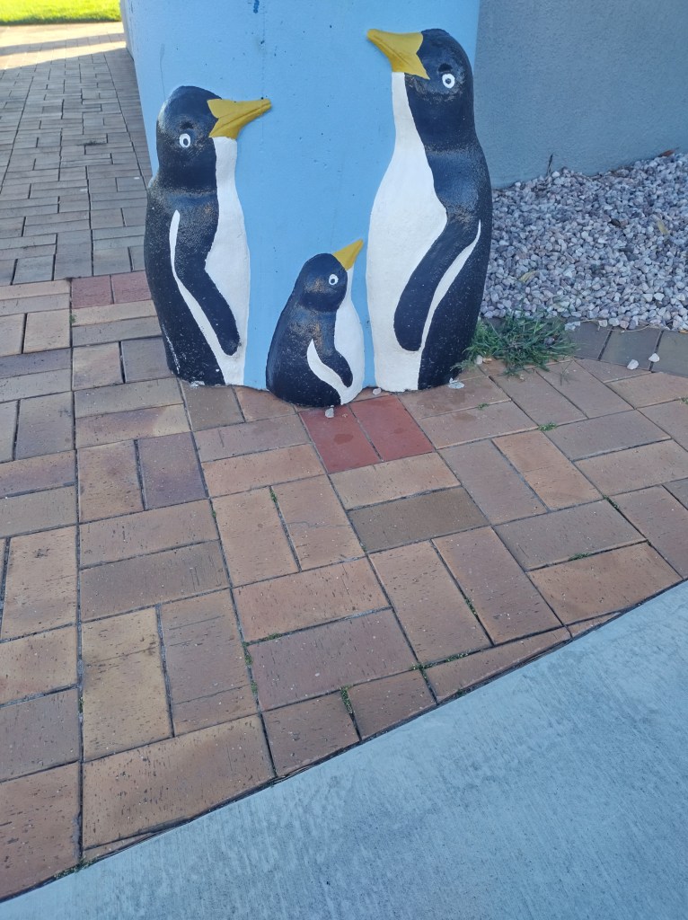 The town itself sits right on the coast and this small town is a buzz with all the locals….they are so friendly . We walked into town and had a coffee and had the train pass us by as it goes through Penguin.
