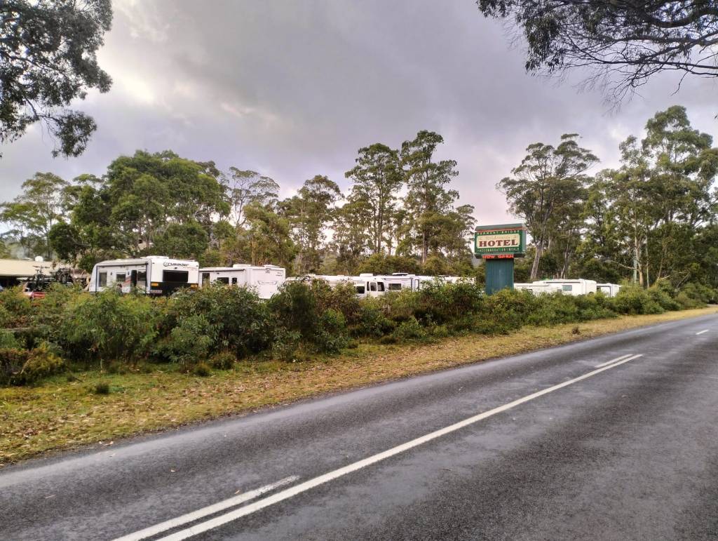 Derwent Bridge Wilderness Pub is located between Hobart and Strahan on the West Coast. We decided to stay here as it was free to park up and camp and it had good reviews for pub food. We were lucky to find a spare camping spot as this place is very popular and central to a lot of lakes and national parks.