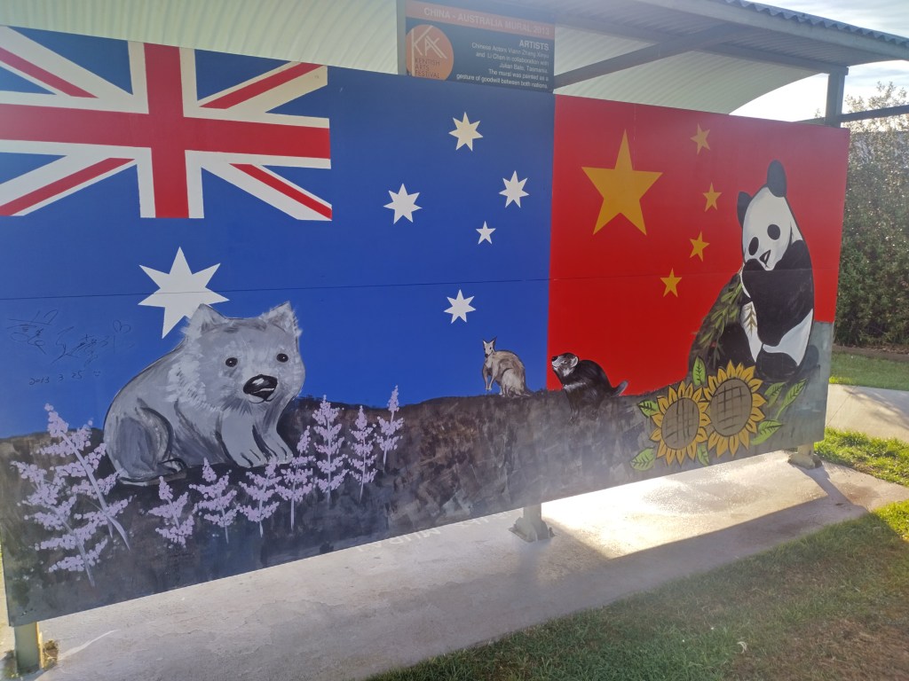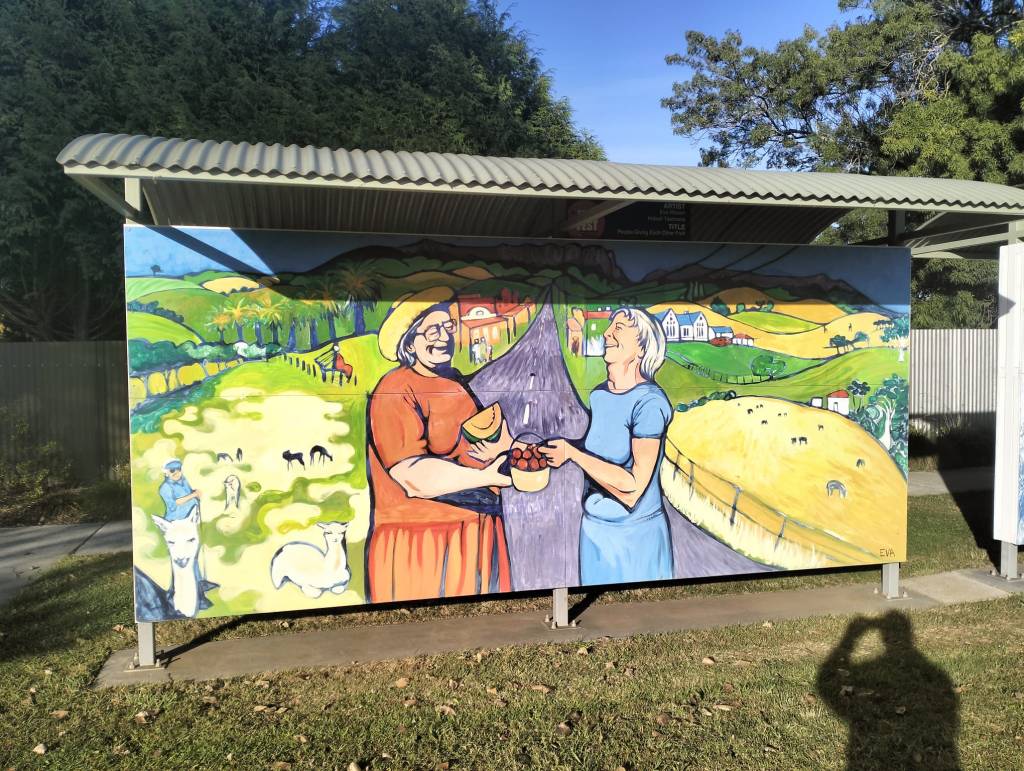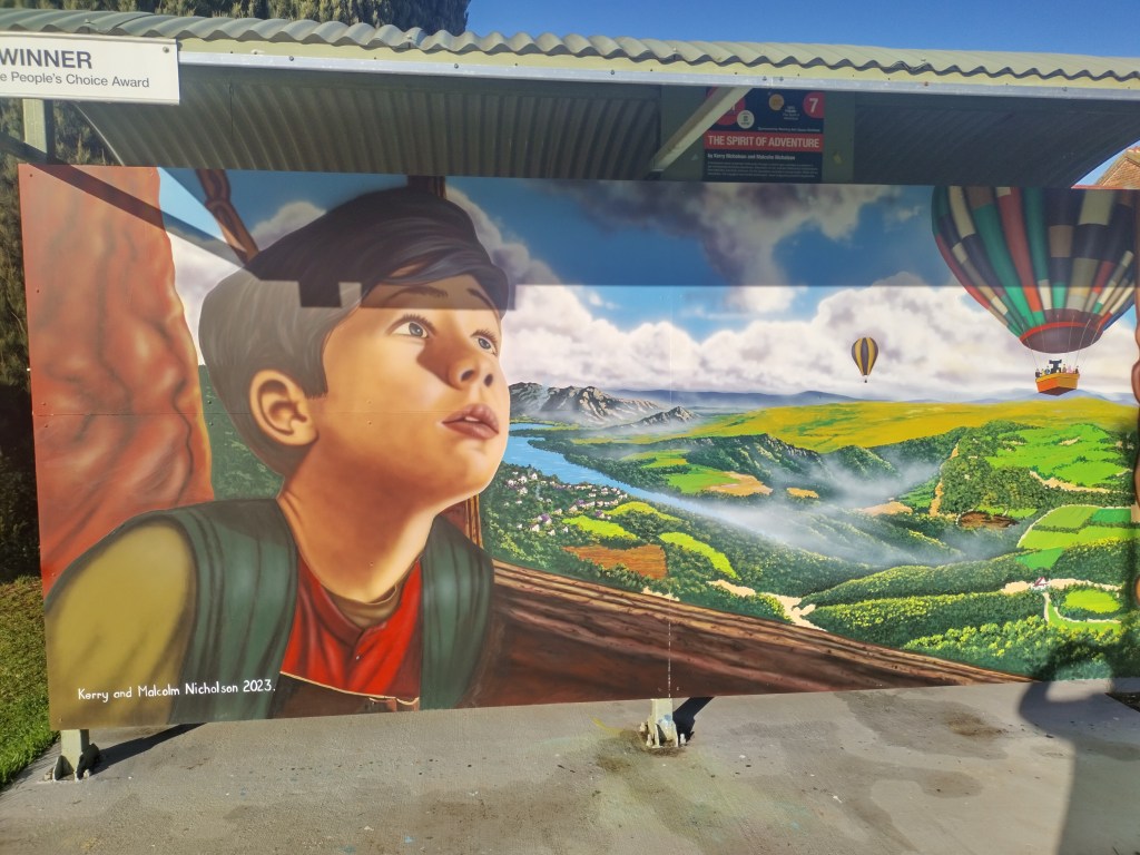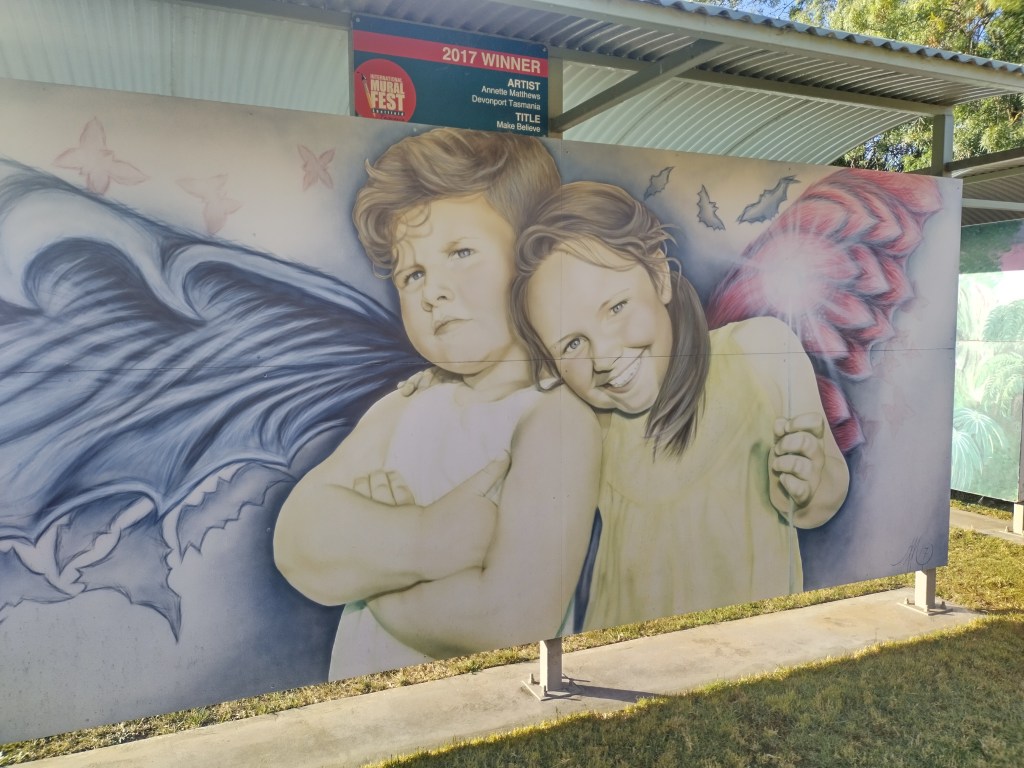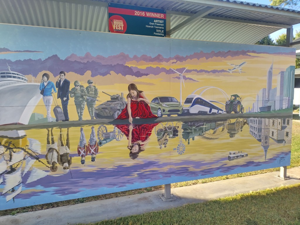 Sheffield is a town 23 kilometres inland from Devonport north west Tasmania. Sheffield has earn’t its reputation as Tasmania’s Outdoor Art Gallery. Murals can be found on every street corner, main streets and into neighbouring areas. With over 200 available to view they all hold their own stories. A committee was formed in 1980 with a sole purpose of reviving this little town. Some of the committee saw a documentary of reviving a small town in Canada the idea was presented and accepted and the project began to get artist on board to make this place into what it is today. Mural fest which has evolved over the years ensures that they provide unique and contemporary art comprising of mural painting competitions yearly. Artist come from all over the world to compete and hopefully get the prize of winning mural and artist for the year.