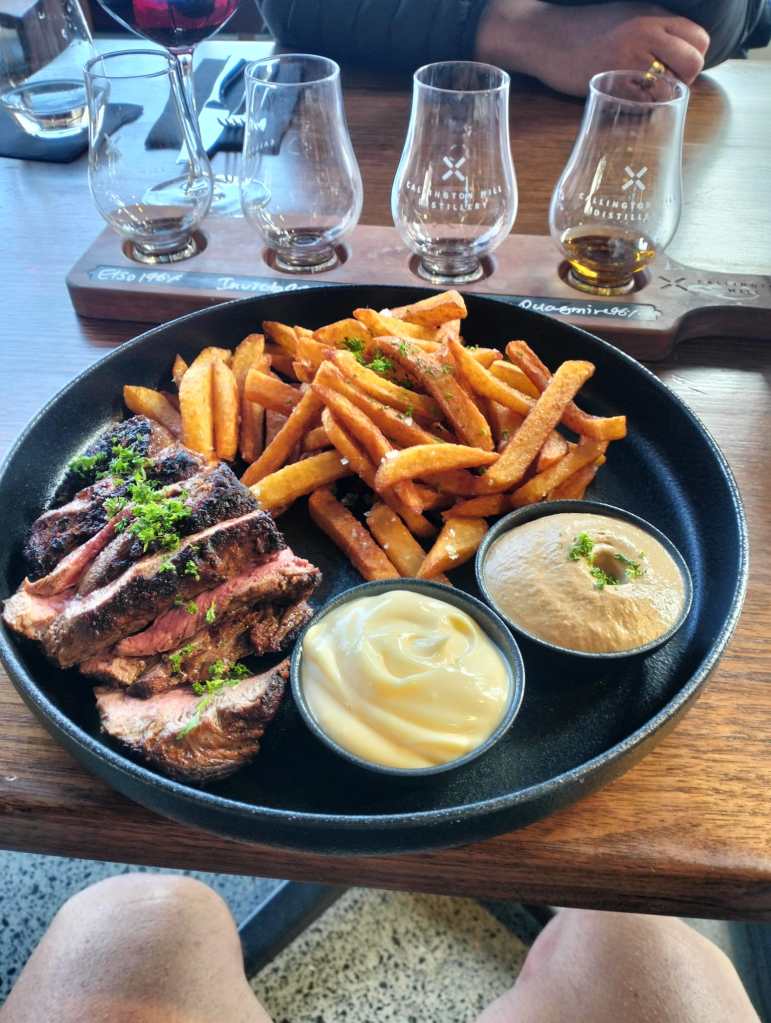 Callington Mill is at the heart of the town and can be seen from a far . The mill has been lovingly restored along with the other buildings that make up the mill precinct. The windmill was built in 1837 by entrepreneur John Vincent. He saw an opportunity in the developing Oatlands community so he established a milll. The mill produced flour for the community and on the side he established a distillery which was illegal at the time. Today there are self guided tours very informative around the windmill and there is a whiskey distillery with a restaurant on site. Paul had a tasting of 6 different types of whiskey and we had the most magnificent lunch. I had the best pork belly i have ever tasted and paul had the Callington steak dish. This distillery is well worth a visit as it represents cutting edge whisky making for this century.